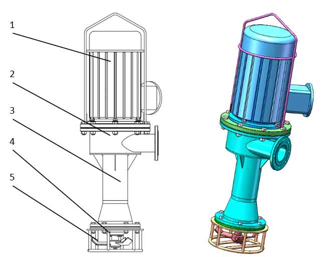 泵下部鉸刀對介質(zhì)進(jìn)行破碎、攪拌并推送進(jìn)入吸入腔,通過吸入腔內(nèi)的螺旋推進(jìn)器將介質(zhì)輸送至排出腔,排出腔內(nèi)葉輪對介質(zhì)進(jìn)行加壓輸送入管道。